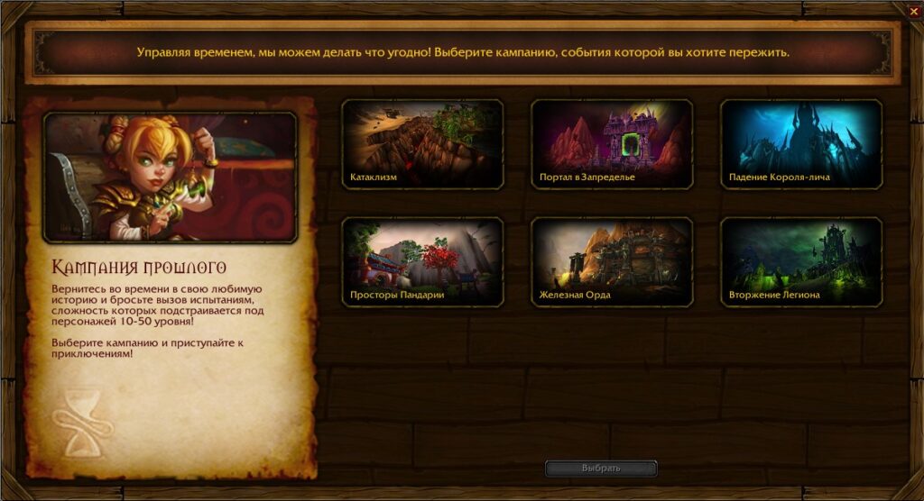 Новые персонажи 10+ уровня,автоматически направляются к Хроми, ожидающей искателей приключений возле посольства союзников Альянса к северо-западу от Квартала Дворфов или у посольства союзников Орды в южной части Аллеи Духов. Поговорив с Хроми, вы сможете выбрать кампанию в любом из прошлых дополнений, и она будет подстраиваться под уровень вашего персонажа.